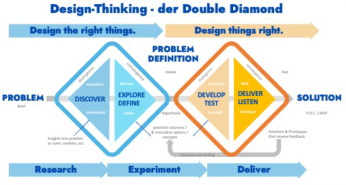 Design-Thinking und der ‚Double-Diamond‘ helfen, ein neues Projekt zu strukturieren.